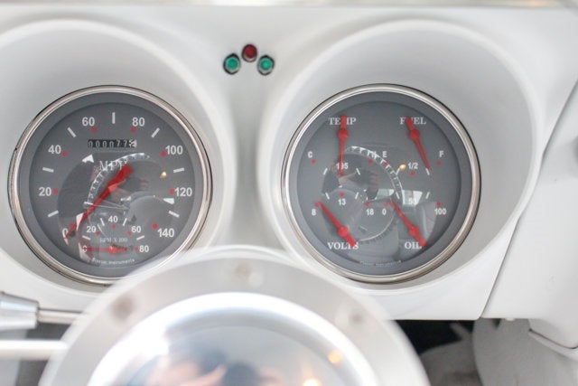- The rear body panel has reversed taillamps fabricated from a '69 Camaro and a welded-in pop-up gas cap.