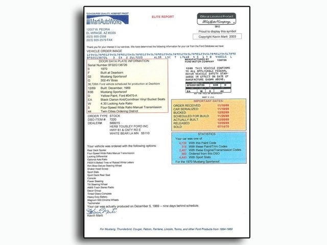 - Marti Report Numbers Matching Drivetrain Included