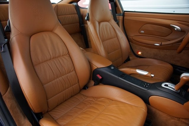 The cockpit of this Porsche maintains basic design themes from the past but boasts cleaner layouts and enhanced functionality, particularly the classic instrument cluster. Though the cabin has a function-oriented layout, upscale materials on the doors and dashboard, and remarkable craftsmanship and attention to detail throughout welcomes both driver and passenger. The natural brown leather seats in front are firmly bolstered and deeply contoured, and are in excellent condition, and partnered with the perfectly arranged and precisely weighted pedals, offer miles of comfortable driving.