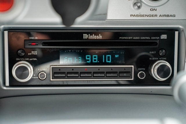 - MCINTOSH AUDIOPHILE SYSTEM -inc: 300-watt peak pwr single CD player (2) 5.25" co-axial door speakers w/external electronic crossover 200-watt parametrically equalized 3-channel amplifier w/Power Guard 8" subwoofer w/inverted neodymium magnet (2) 1" soft dome door tweeters customer interface w/dual 20-bit Burr Brown DACs switchable FM diversity tuner rotary volume bass & treble controls blue fluorescent display 6 AM & 18 FM memory presets illum faceplate w/McIntosh & Ford GT logo