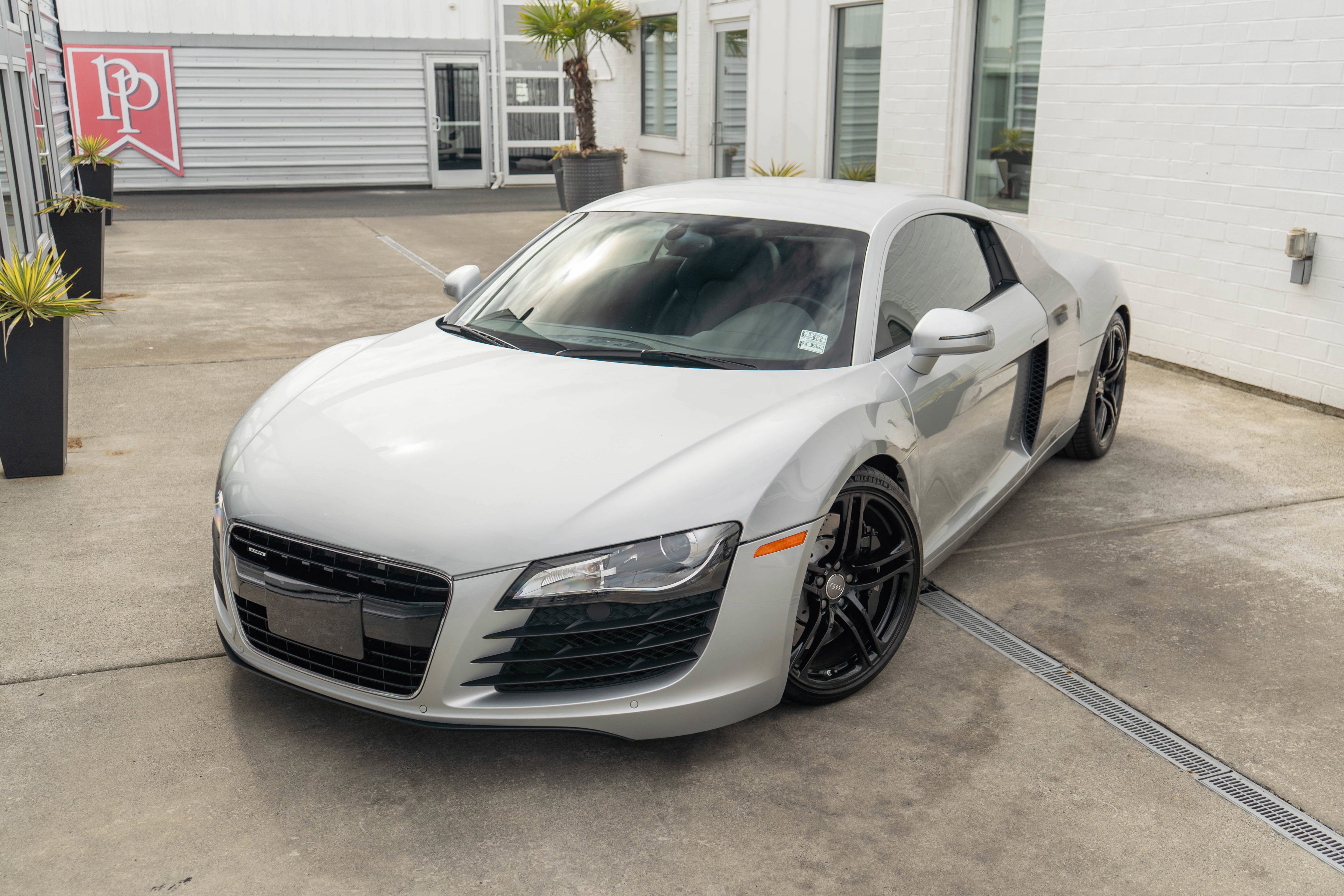 - Classic R8 Color Combination of Ice Silver Metallic Over a Black Leather Interior