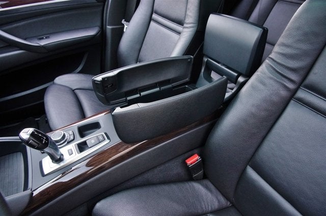 - Front-seat center console with armrest, storage compartment, and auxiliary input