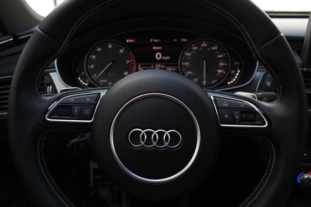Standard equipment consists of Audi drive select, spare tire, power sunroof, full LED headlights (DRL's, low/high beams, turn signals), auto-dimming power-folding heated exterior mirrors, 4-seat configuration, front S7 heated 12-way power sport seats with driver memory, 3-spoke flat-bottom leather-wrapped multifunction steering wheel with shift paddles, power adjustable steering column with memory, Valcona leather seats, 4-zone automatic climate control, Bose surround sound, Audi navigation plus with MMI touch, SiriusXM satellite radio, Audi connect, Audi side assist, Audi advanced key, garage door opener, Bluetooth®, parking system with rearview camera, power tailgate, and Audi smartphone interface.